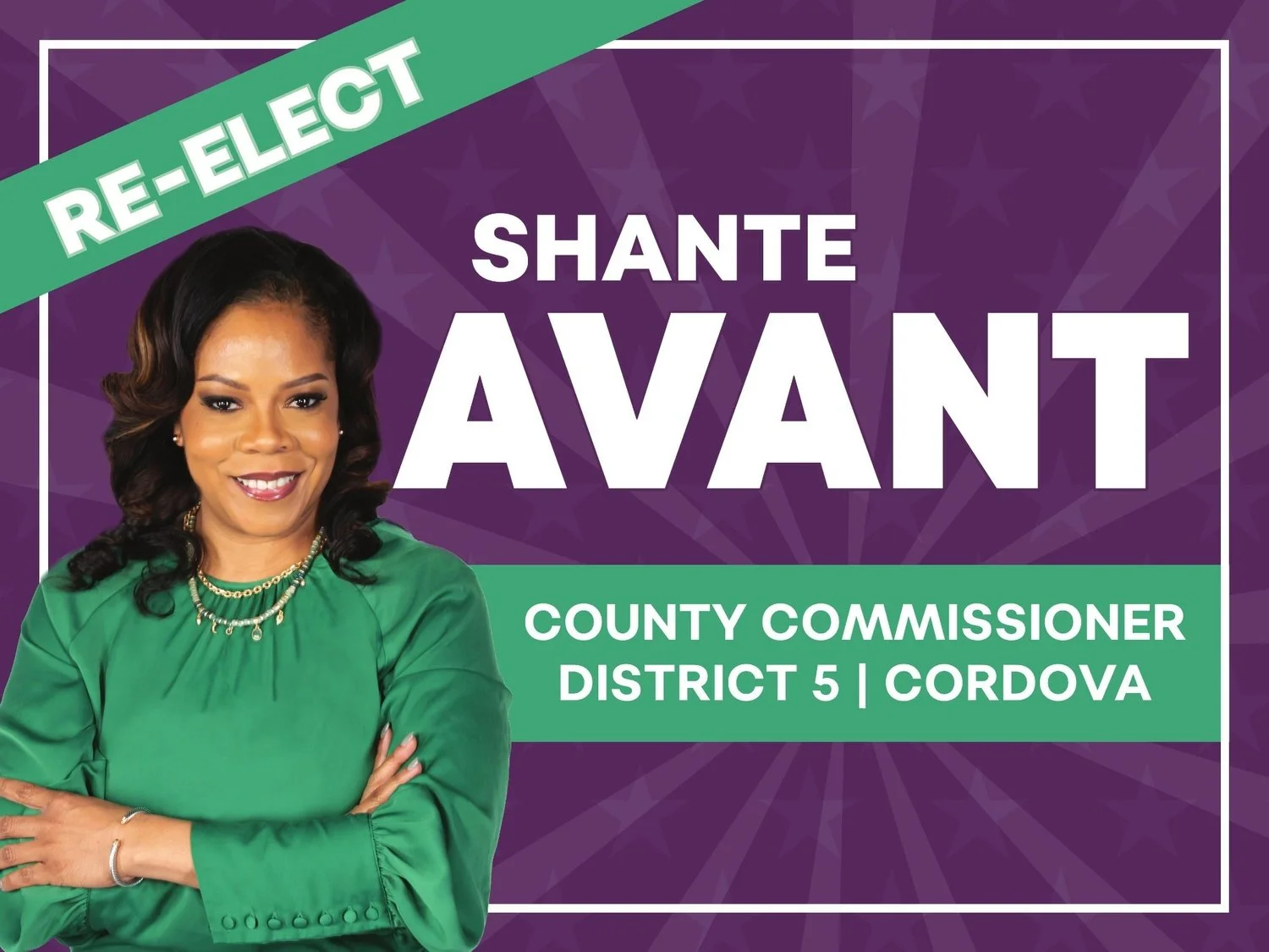 Shante K. Avant is the first Black woman elected to represent District 5 on the Shelby County Commission. As your Chairwoman, she has delivered real results for Cordova and is ready to keep moving District 5 forward.